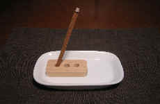 たとえば、私が時々利用するものに 「100円ショップで売っている幼児用玩具(ブロック)」があります。木製の単純なブロックなのですが、8mmほどの穴があいており、そこにお香を挿し、立てられるようになっています。
